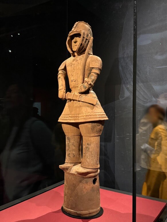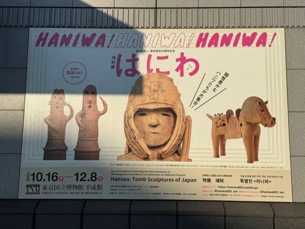 これは、歴史の資料集などに載っている「挂甲の武人」というはにわが、国宝に指定されてから50周年になるのを祝して、国内と海外にある「挂甲の武人」と同じ造りのはにわ4体をトーハクに集めたよ! というなかなかな特別展です。