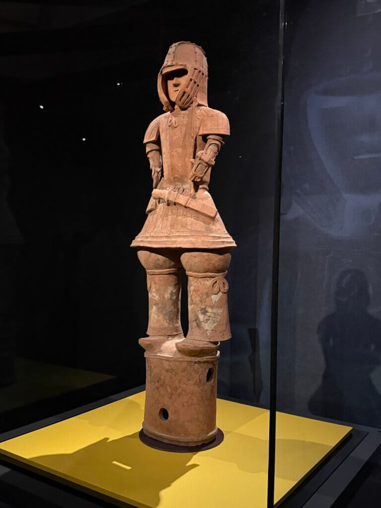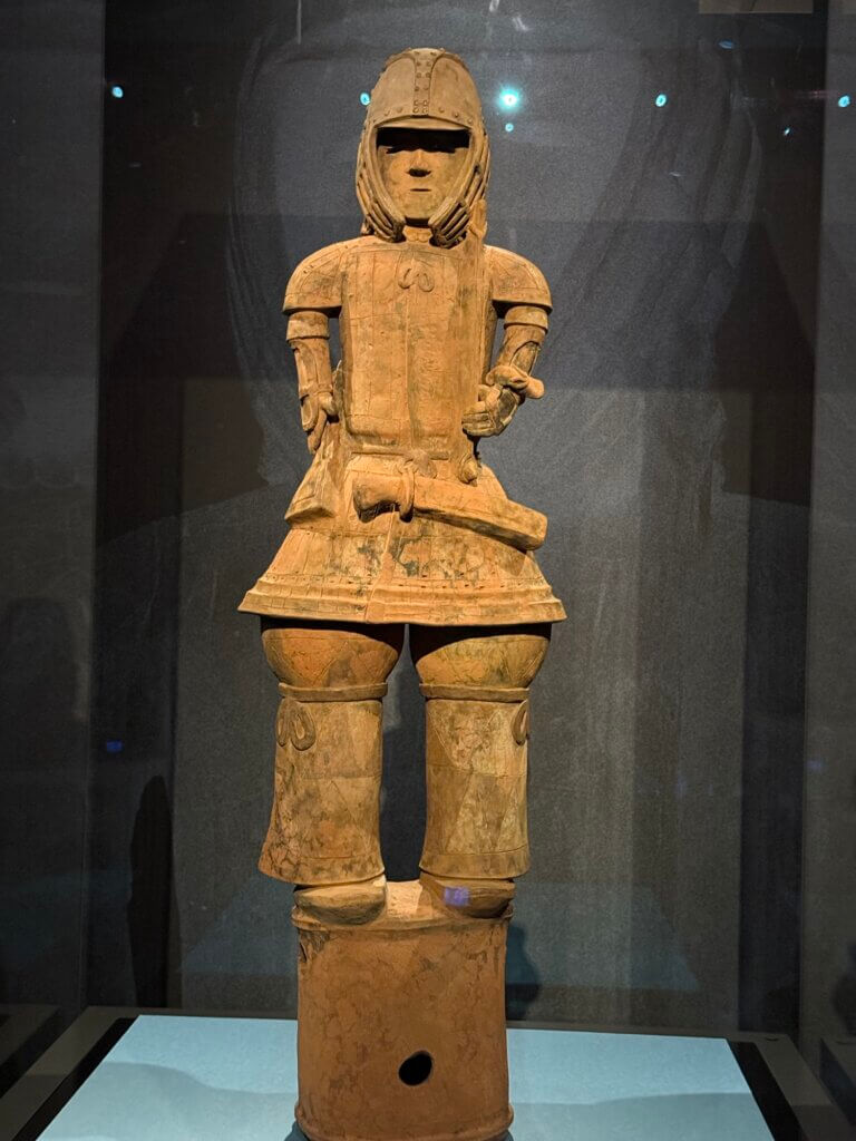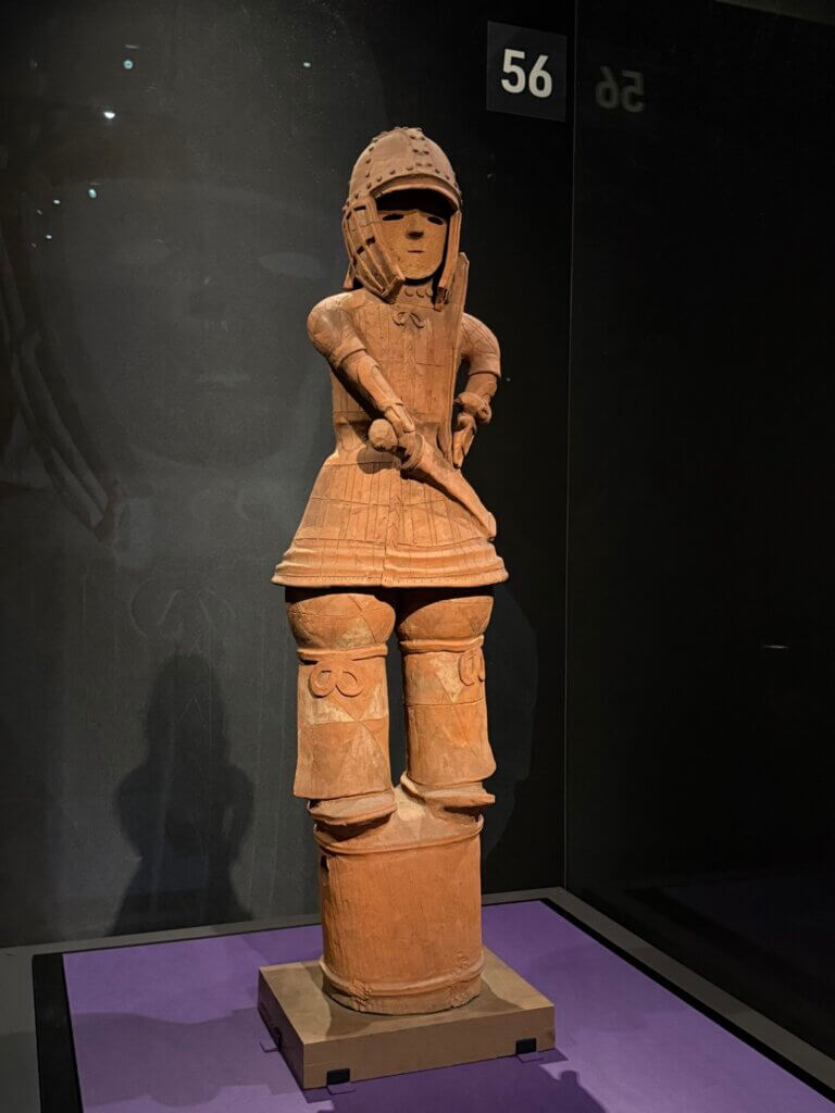 埴輪と兵馬俑には直接の関係はないらしいけど、兵馬俑が紀元前3世紀で埴輪が紀元後3世紀なので、もしかしたら海の向こうで誰かが「大陸のでっっかい王様のお墓は、人型の焼き物の兵士に守られているんだってさ」という話を聞いてきた……なんて可能性はあるのかも、などと思ったりしました。(弥生時代にはもう、大陸とやりとりがあったらしいから、無いとは言いきれないよねー……)