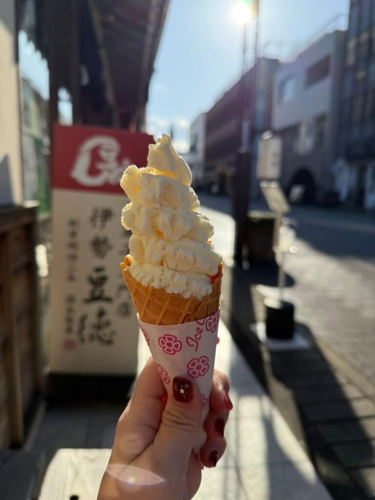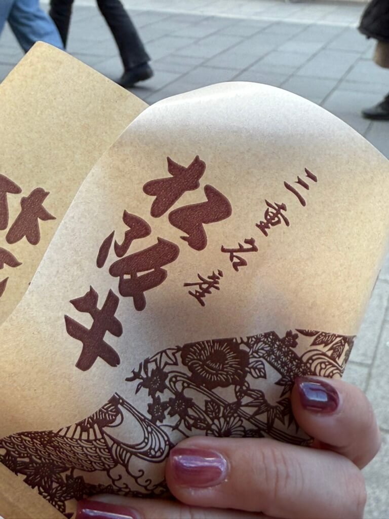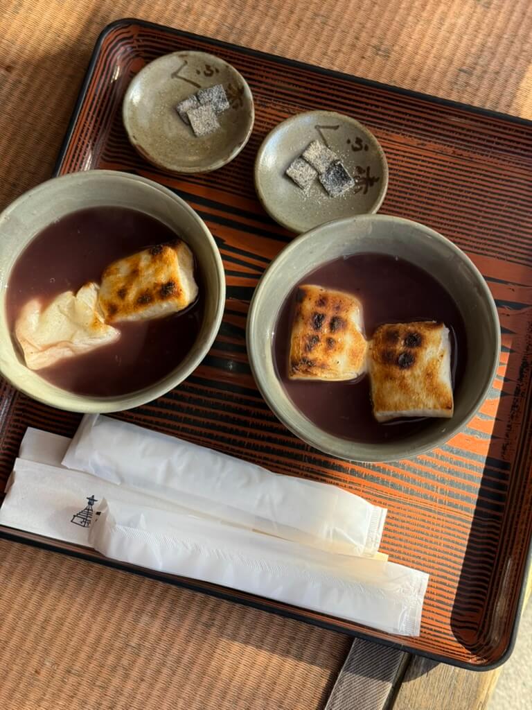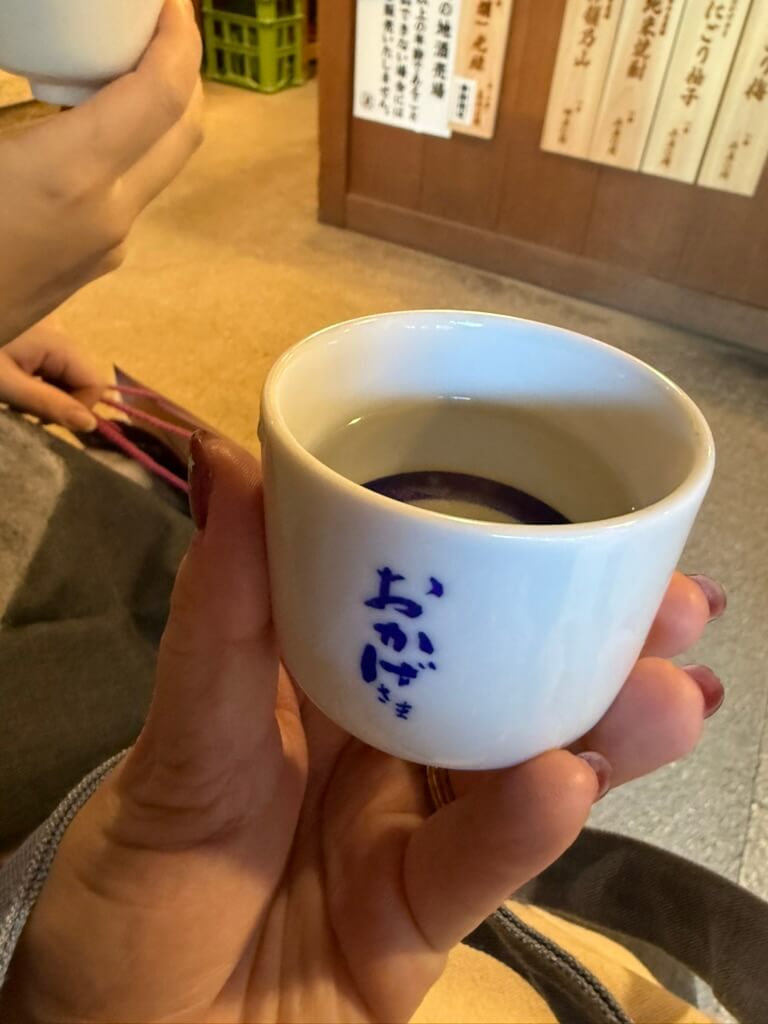 お参りのあとはもちろん、おかげ横丁! 美味しいものをたくさん堪能して帰りました。おちょこで頂く日本酒と、赤福のお汁粉、美味しかったなあ……。