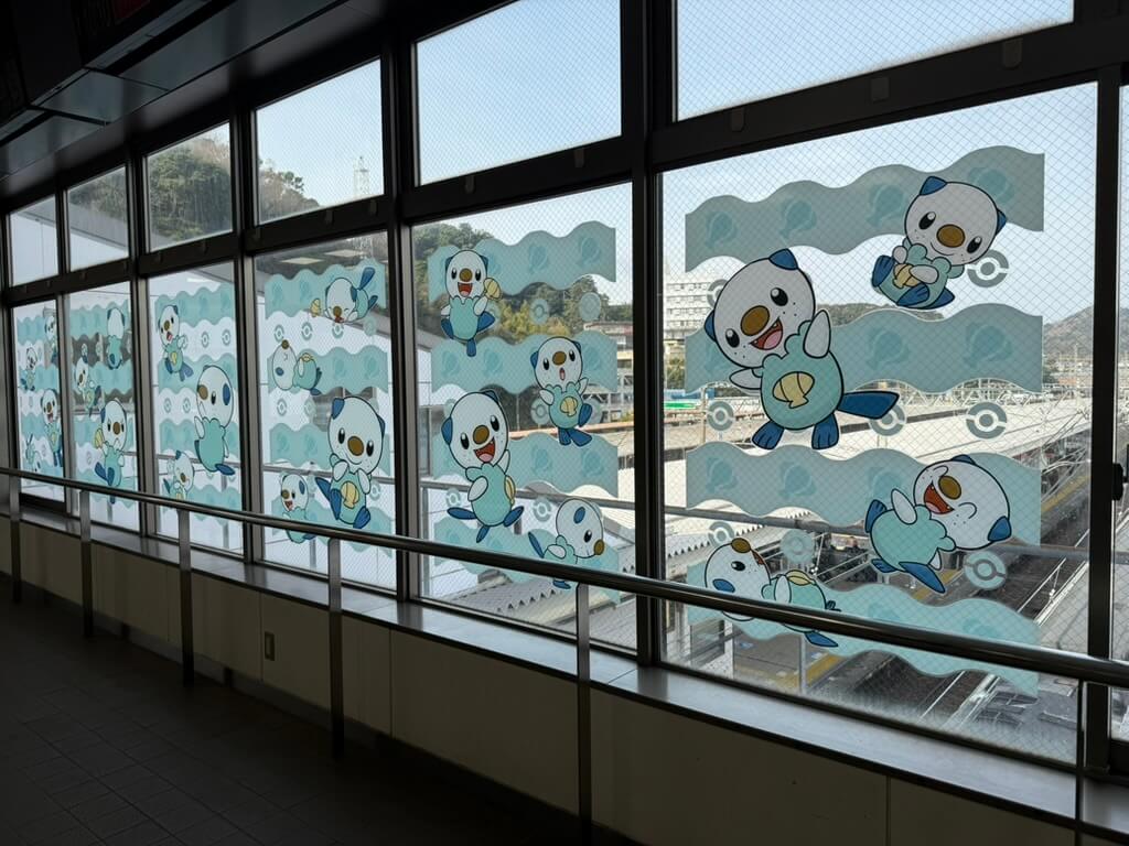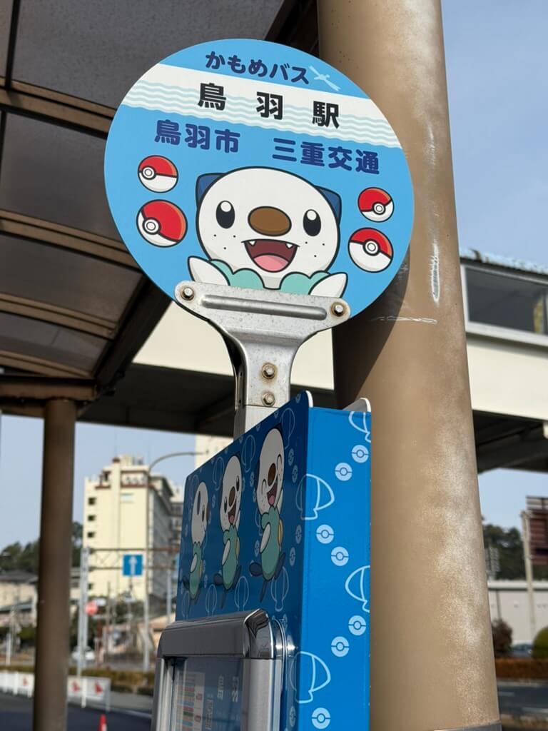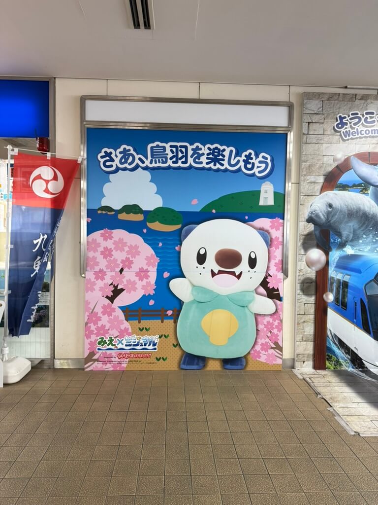 到着した鳥羽駅は、とってもミジュマルでした! 三重県のポケモンActのご当地応援ポケモンに、ミジュマルが選ばれていたんですね。鳥羽水族館に日本最後の飼育ラッコがいるからなのでしょう。(旅の半年後くらいにミジュマル公園ができたと聞いて、ちょっと歯がみしました。近くに泊まったのに~~~!)