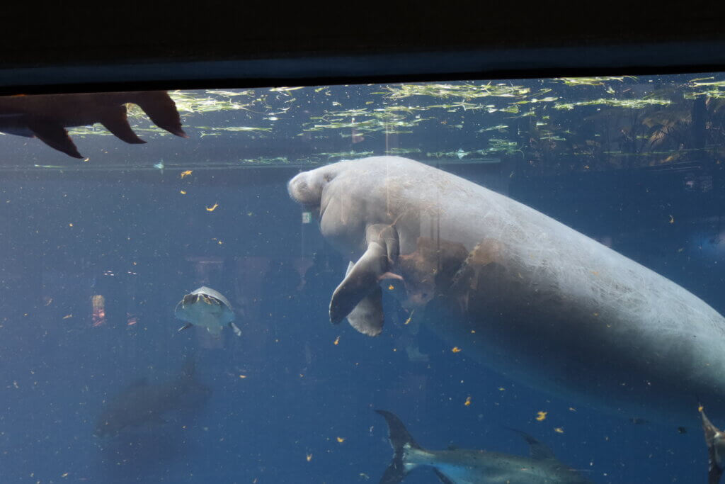 他にも、ジュゴンと時々頭の中で混ざってしまうマナティーも居ますし、水中の生き物以外にも、魚を獲る珍しいネコ科のスナドリネコや魚を捕る鳥類などもいます。もちろん、色鮮やかな魚たちが美しい南国の海の水槽もあれば、北の海の水槽もあり、地元の海の水槽もあります。