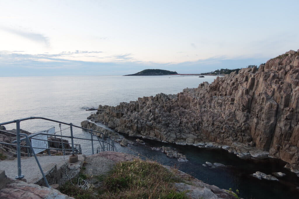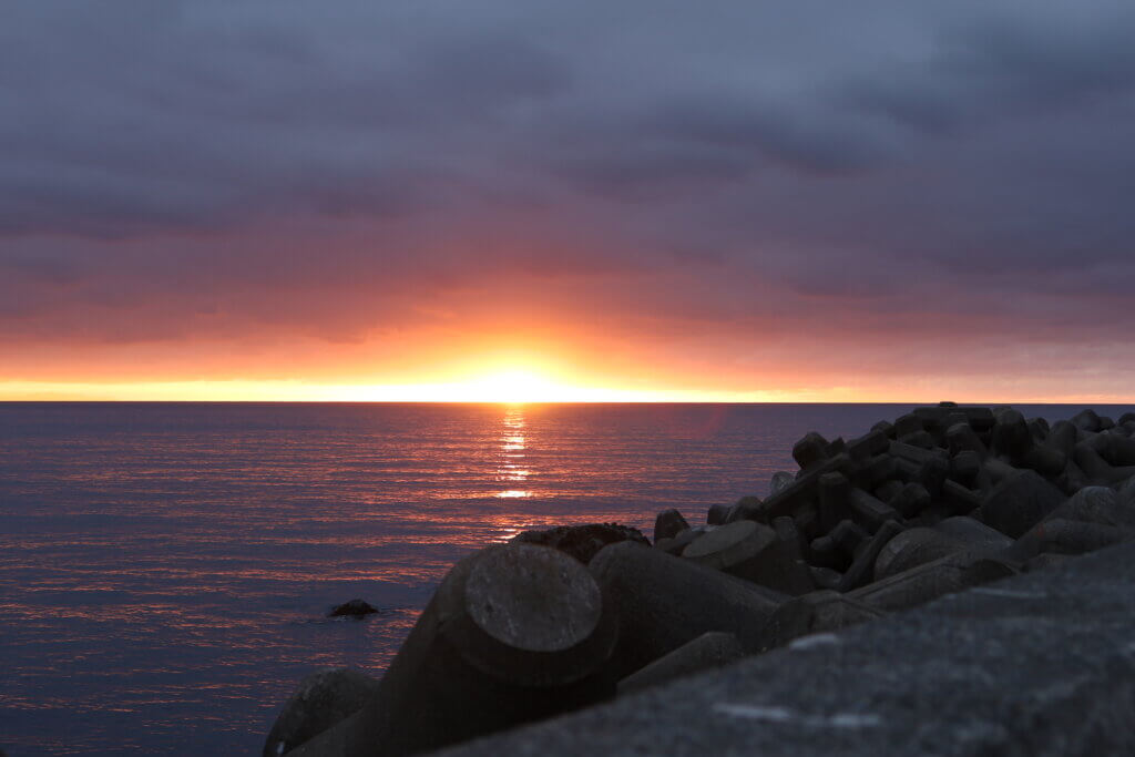 関東育ちの私(と友人)にとって、太陽は「海から昇るもの」。しかし日本海に来れば、太陽が海に沈むところが見られる! と言うわけで、泊まる宿の付近の越前海岸をドライブ。海に沈む美しい太陽に歓声を上げ、子どものようにはしゃいで写真を撮りまくってしまいました。