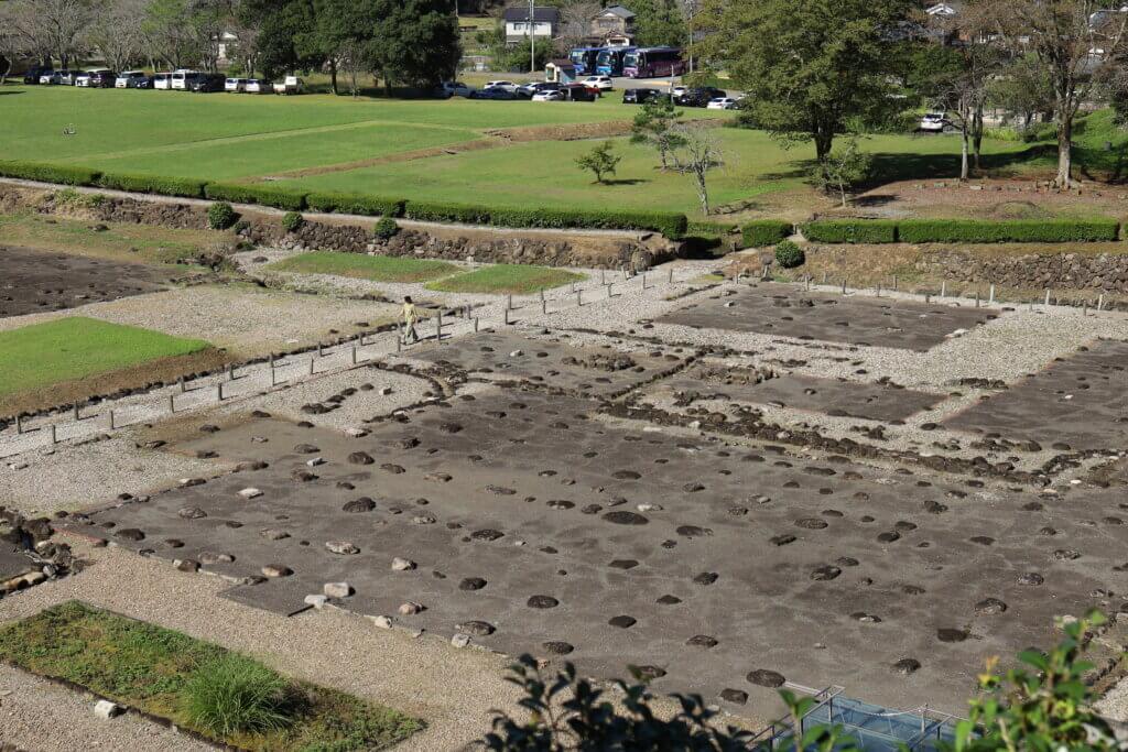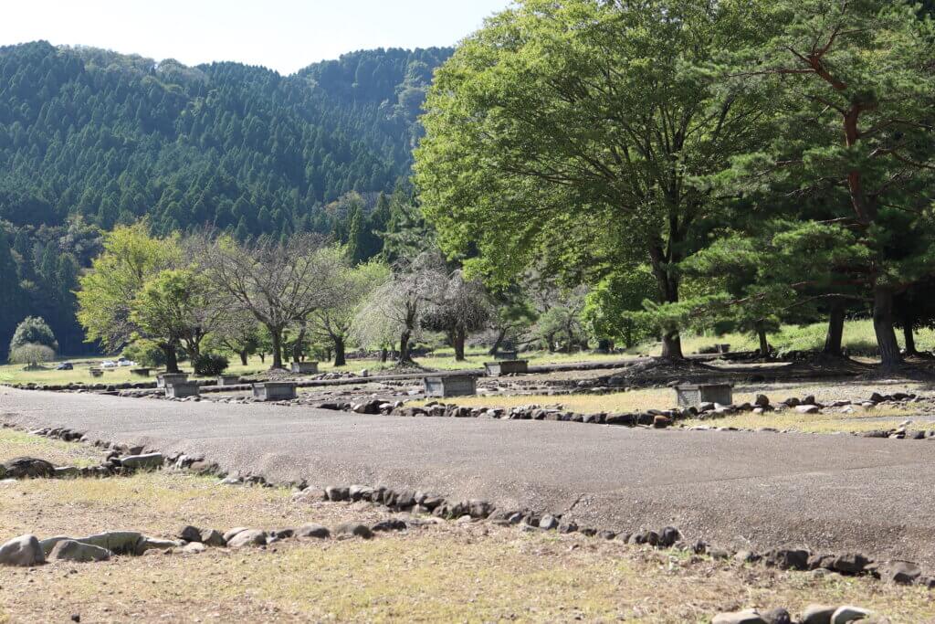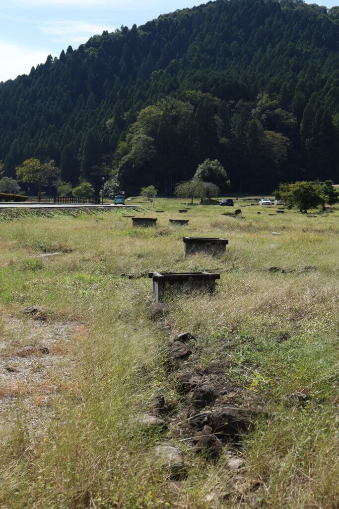 現地でレンタル自転車を借りて、遺跡をあちこち巡りました。京都の方面に抜ける谷間にあって、ここを押さえたらそれはもう、流通を押さえたも同然で栄えるよなあ、という場所。今はのどかな草むらに遺構が点々とあり、途中に復元区域があって賑わっている、楽しい遺跡でした。