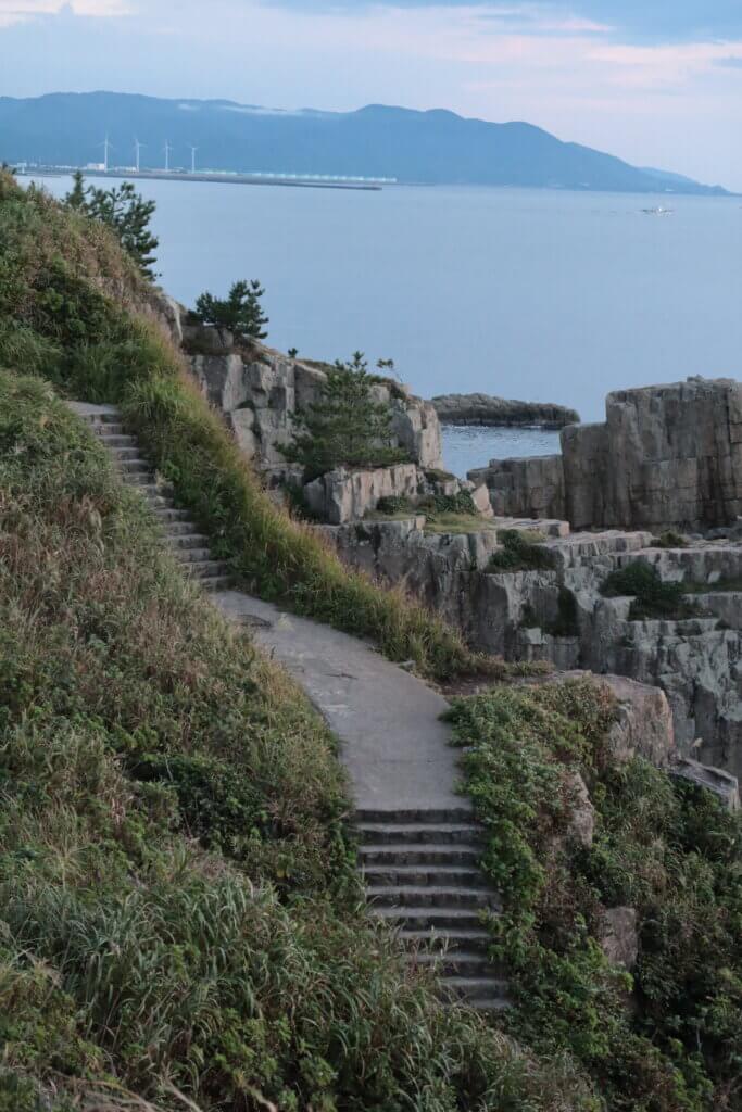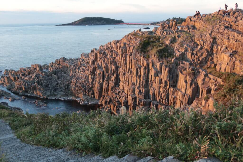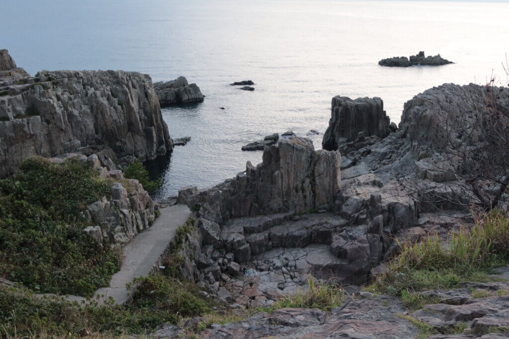 火サスで犯人を追い詰める崖、みたいなイメージがあった東尋坊ですが、崖への道なりはお土産屋さんの立ち並ぶ、ザ・観光ストリート。たどり着いた崖の上も、観光客の人がたくさんいて、暗い雰囲気は全くなし。遊覧船もたくさん浮かんでいて、賑やかな場所でした。